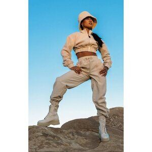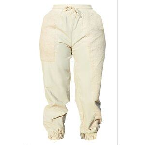 NWT PRETTYLITTLETHING STONE BORG PANEL OVERSIZED SPORT JOGGERS Size M Color Ston