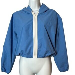 NWT PRINCE PICKLEBALL Jacket Blue Cropped Hooded Zip White Stripe Women’s XS