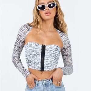NWT PRINCESS POLLY Scripted Long Sleeve Corset Top
