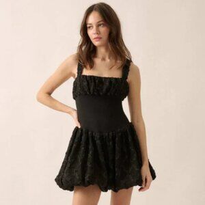 NWT PROMESA Bubbly Blooms 3D Floral Lace Bubble Mini Dress Black Size S