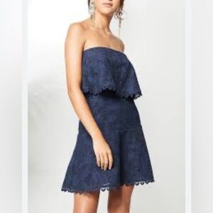 NWT PS The Label Navy Blue Scallop Hem Lace Strapless Dress Sz S