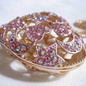 NWT PUFFY OPENWORK HEART PINK CRYSTALS NECKLACE