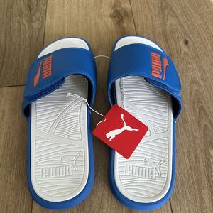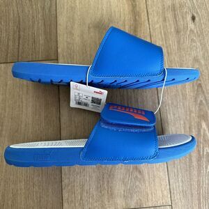NWT PUMA Cool Cat 2.0 V Logo Adjustable Mens Slide Sandals Hyperblue/White 11