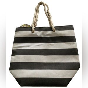 NWT PURA VIDA Pineapple “Glam Orama” Grey & White Striped Tote Bag