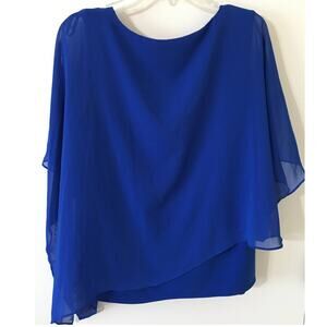 NWT PXL JM Collection Petite Party Time Flag Blue Chiffon Layer Asymmetrical Top