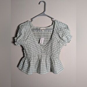 NWT PacSun LA Hearts V-Neck Babydoll Top green cropped peplum size small