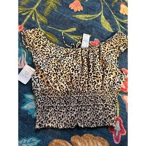 NWT PacSun Lottie Moss Cheetah Smocked Shirt Size Medium