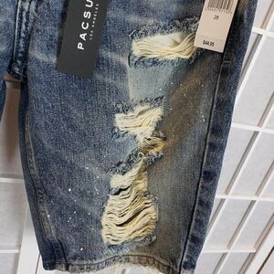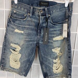 NWT - PacSun Distressed Speckled Long Shorts Size 28 Medium Indigo
