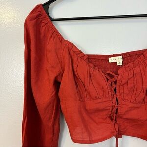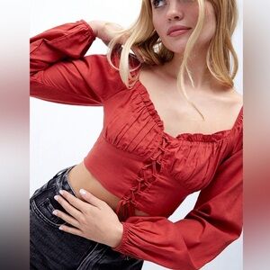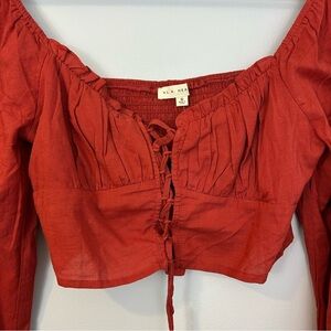 NWT PacSun/La Hearts Lace Up Long Sleeve Rust Boho Crop Top Size Medium