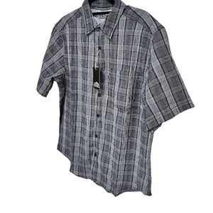 Keywords: Pacific Outfitters, plaid shirt, button-up, short sleeve, gray, men's casual, polyester, cotton, button-down collar, new with tags, Standard.