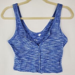 NWT Pacsun Cropped Tank Top Size Small Blue/White Design Button Front