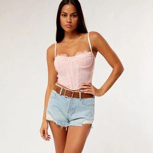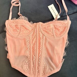 NWT Pacsun LA Hearts Pink Lace Trim Mesh Corset Top Small