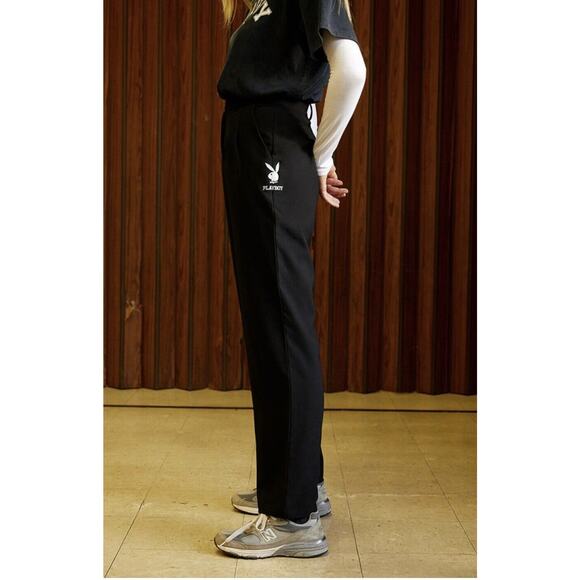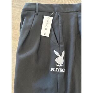 NWT Pacsun Playboy Black Boyfriend Fit Wide Leg Embroidered Bunny Logo Pants XS
