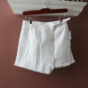 NWT Pacsun White Denim Wrap Skirt Asymmetric w waist buckle and frayed hem.