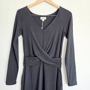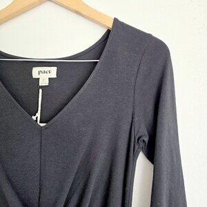 NWT Pact Black Fit & Flare Classic Long Sleeve Cross Wrap Front A Line Dress