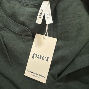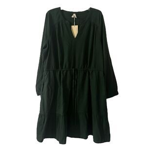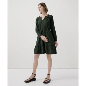NWT Pact Long Sleeve Dress Size XL Green Cinch Waist Organic Cotton Sustainable