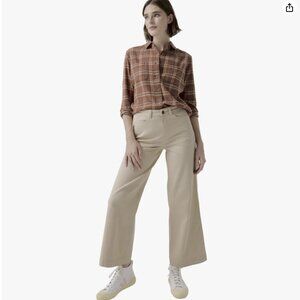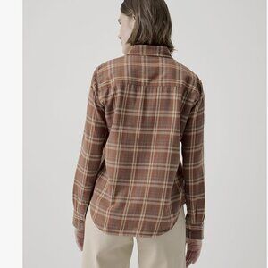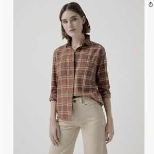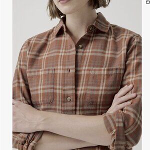 NWT Pact Organic Cotton Flannel Button-Up Shirt spice plaid L (fits 10 and 12)