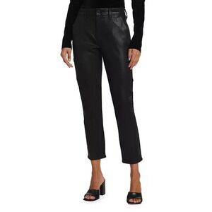 NWT Paige Jolie Coated Slim Straight Leg Cargo Pants BLACK SIZE 29/100%AUTHENTIC