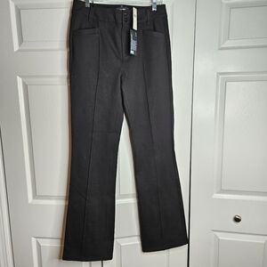 Features a double button waistband closure, a flattering seaming detail down the front, and finishes with a slight boot cut.