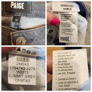 NWT Paige Verdugo skinny ankle grey stretch jeans. Women's size 31 or 12