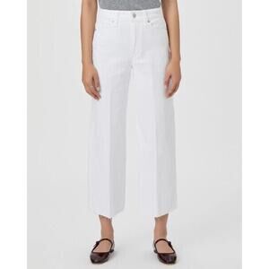 NWT Paige Women's Crisp White Anessa Wide Leg Raw Hem Ankle Jeans Petite Size 32