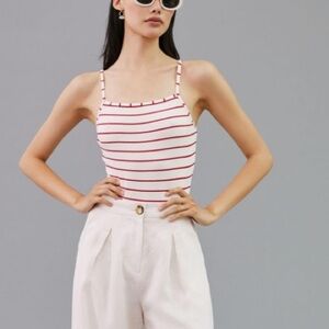 NWT Paige Women’s Rebecca Cherry Red Stripe Thong Bodysuit in size S