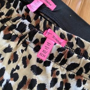 Brand-new, extremely soft 95% polyester/5% spandex women's pajamas in extra small. This three-piece set has leopard-print long pants, sleep shorts, and a black tank top.