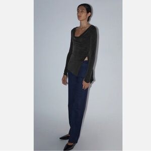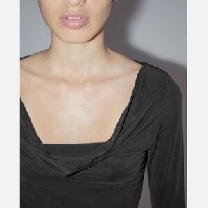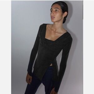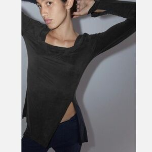 ★NWT Paloma Wool Asymmetric Long-sleeve Cupro Top with cuffs and side slit Black M★