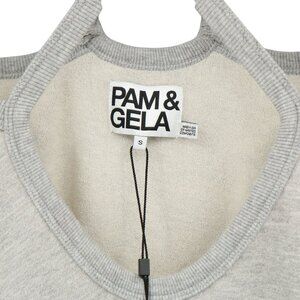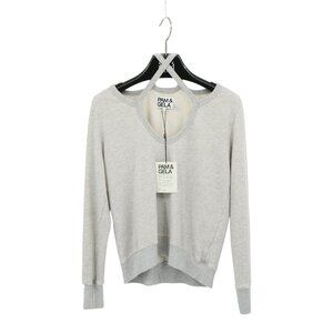 NWT Pam & Gela Rib Cross Neck Sweatshirt Heather Grey Pullover Top S