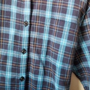 NWT Pam & Gela Tie Back Plaid Blue Tartan Tunic Shirt L