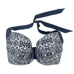 NWT Panache Swim Sia Bikini Set 32G Top & Small Bottom Navy White Ikat Print NEW