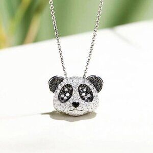 NWT Panda Pendant Necklace Platinum Plated Plated Black Clear Cubic Zirconia