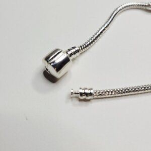 NWT Pandora Style Snake Chain Bracelet Snap Lock Barrel For Charms Shiny Silver