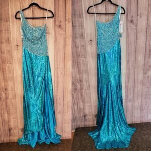 NWT Panoply Turquoise Blue Sequin Gown, Style # 14569, Sz 6