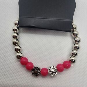 Paparazzi Starlet Shimmer Mini Flower pink and silver tone beaded stretchy bracelet.