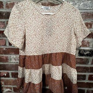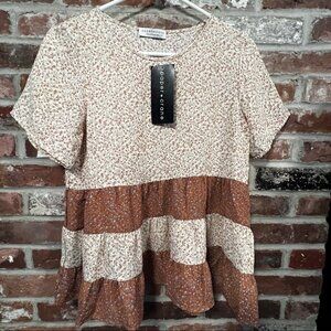 NWT Paper Crane Floral Tiered Top Brown Ruffle