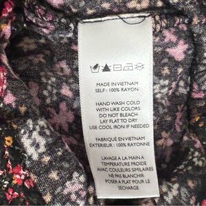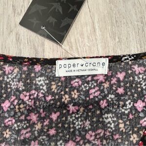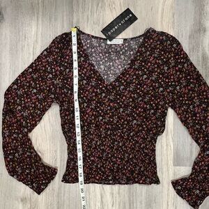 NWT Paper Crane Long Sleeve V Neck Smocked Peasant Top Black Floral Size XS