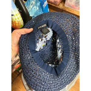 NWT Paper Yarn Packable Sun Hat Navy OS. Navy with light blue trim. Steve Madden insignia o. symbol button. Bucket hat style. One Size.