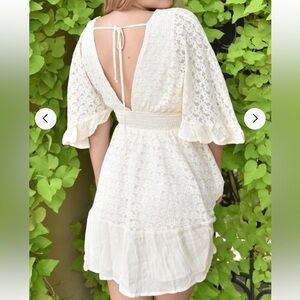 PaperMoon dress, ivory lace mini dress, smocked waist boho dress, women's size medium, flowy short dress, NWT PaperMoon clothing, casual summer outfit, romantic ivory dress, festival style mini dress, coquette, romantic style, cottagecore, festival, boho, bohemian