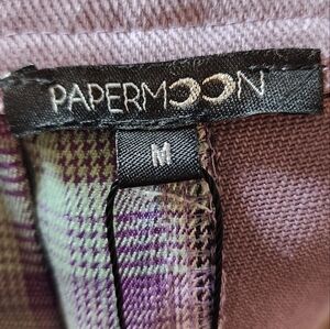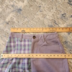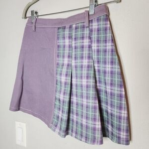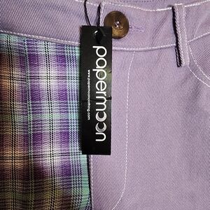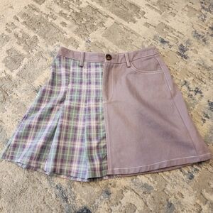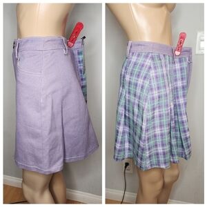 NWT Papermoom Mixed fabric Denim Pleated mini skirt. Purple green. Size Medium.
