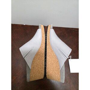 NWT Papillio By Birkenstock Women's Gray Leather Studded Wedge Slide Sandals Siz