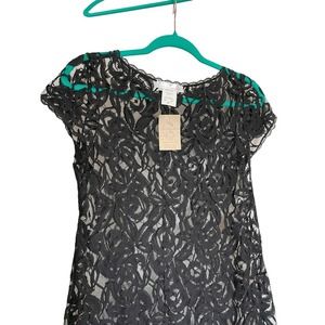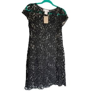 NWT Papillon Blanc Womens Mesh Lace Cocktail Dress Short Sleeve Size S Black