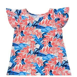 NWT Pappagallo Girls' Pink, Blue &White Floral Flutter Sleeve Dress - L (10/12)