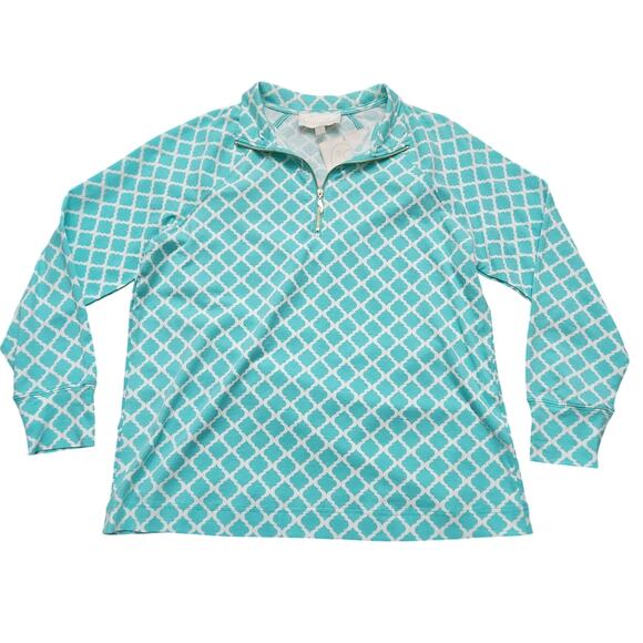 NWT Pappagallo Tropical Quatrafoil Quarter Zip Mint Puloover Size Medium