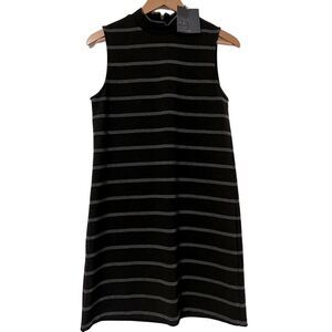 NWT Paraphrase Striped Mock Neck Black Gray Sleeveless Stretch A Line Dress M