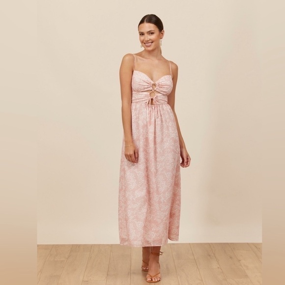 Park & Fifth Wylie Rosa pink & white floral spaghetti strap midi dress. New with tags! Gorgeous pink and white small print floral design. Zipper and back. Adjustable spaghetti straps. Open detail along cleavage that has ties to adjust to your preference. Fully lined interior. Excellent new condition with no noted flaws. Tag still attached. Women’s size XXL. Measures approximately 18 inches flat across chest from armpit to armpit and approximately 50 inches in length. This dress is perfect for brunch, bridal shower or baby shower, and wedding guest, vacation resortwear and many other occasions. And it is also a beautiful dress for a bridesmaid. This dress is absolutely gorgeous! Note- camera slightly auto corrected color of dress. Color is same as stock photos.