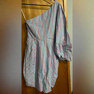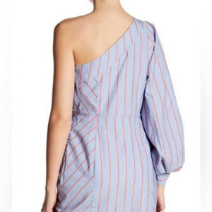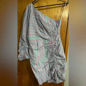 NWT Parker Harmon blue stripe one shoulder ruched lined dress size 4