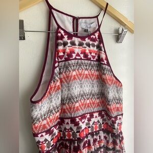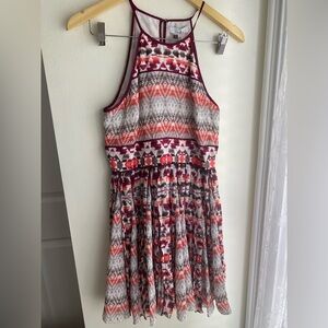 NWT Parker Mini Dress Fit & Flare Ruffle Geometric Print Halter Neck Size Small