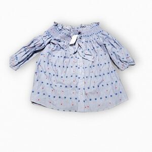 NWT Parker Spade Off-the-Shoulder Embroidered Cotton Top women’s XS blue