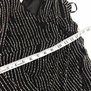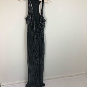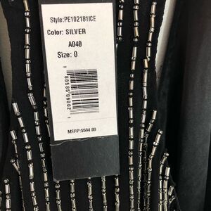 NWT Parker Theron Liquid Silver Beaded Dress 0 New with Tags Black Vneck Split